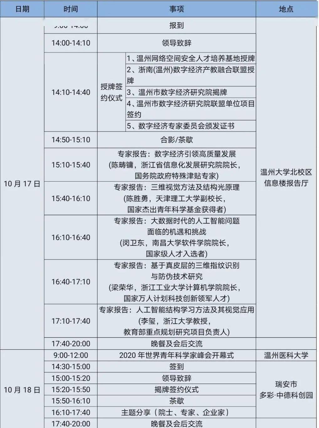数字经济·大数据与人工智能高峰研讨会将围绕主题开展授牌签约、学术报告、项目签约、科技展览等活动。研讨会由中国科协、浙江省人民政府主办,浙江省科协、温州市人民政府承办,六合彩网站-六合彩资料网站 为执行单位。