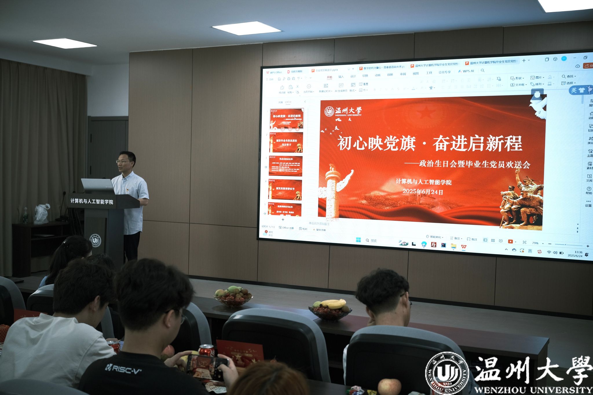 6 月 24 日,温州大学计算机六合彩网站 内气氛庄重而热烈,“初心映党旗・奋进启新程” 毕业生党员欢送仪式在这里盛大举行。全院各党支部党员齐聚一堂,以赤诚之心共赴这场意义非凡的红色之约。