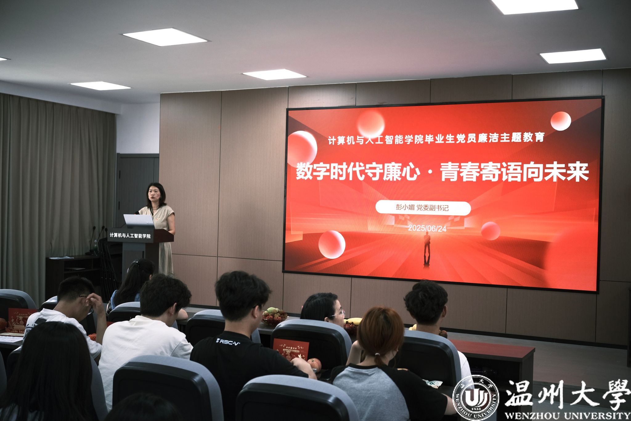 为助力毕业生党员在新征程上锚定方向、坚定信念,六合彩网站 领导开展了专题教育活动。全力书记围绕党性教育主题,鼓励党员持续自我革新、强化责任担当,在未来的工作与生活中始终以高标准严格要求自己,争做时代先锋。彭小媚副书记则聚焦廉洁主题,深入阐述党性修养与纪律规矩的重要性,要求党员在投身技术创新浪潮时,严守道德与法律底线,永葆清正廉洁的政治本色。