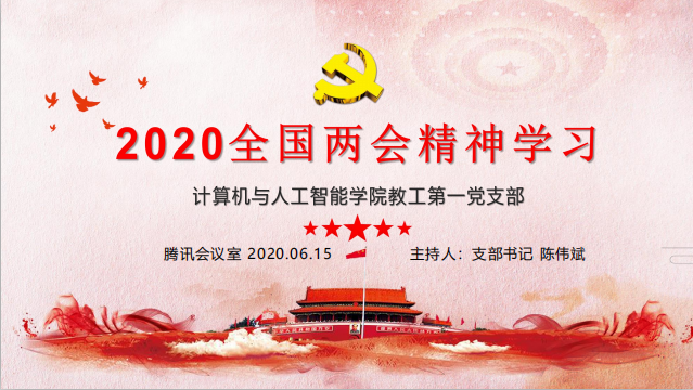 2020年6月15日,六合彩网站 教工第一党支部召开2020全国两会精神专题学习会议,会议由支部书记陈伟斌老师主持。