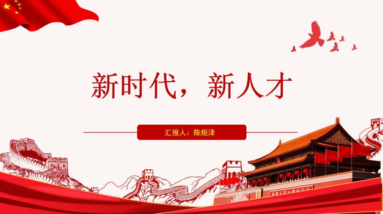 首先,陈烜泽同志向大家说明“新时代,新人才”应当具有爱国情怀与国际视野。青年是我国全面建设小康社会、实现中华民族伟大复兴的生力军,是祖国的未来和民族的希望。“爱国心是人类最高的道德”,但是爱国主义绝不是狭隘的民族主义,而要有国际视野与人类命运共同体情怀。青年应当认识到自己在新时代中肩负的责任担当,不断拓宽国际视野,提高自身能力,努力为祖国为世界作出自己应有的贡献。