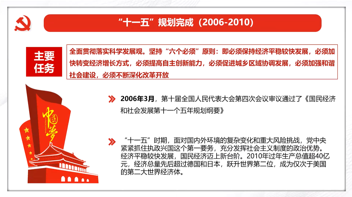 毕诗轩同志讲到2011年-2021年,我国全面建成小康社会进程过半,进入了决战阶段。2012年在人民大会堂举办中国共产党第十八次全国代表大会,这次大会是我国进入全面建成小康社会决定性阶段召开的一次十分重要的会议,高举中国特色社会主义伟大旗帜,以马克思列宁主义、毛泽东思想、邓小平理论、三个代表重要思想、科学发展观为指导,分析了国际国内形势的发展变化,回顾和总结了过去五年的工作和党的十六大以来的奋斗历程以及取得的历史性成就,确立了中国科学发展观的历史地位。