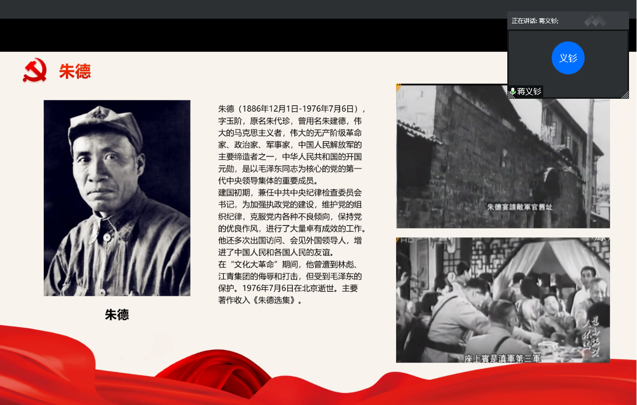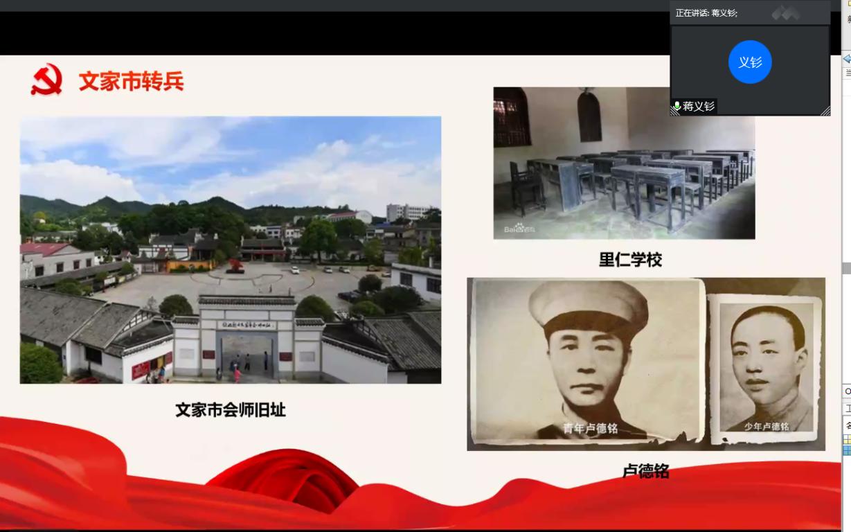 首先,蒋义钐同志引用中共中央总书记、国家主席、中央军委主席习近平发表于《论中国共产党历史》一书中的《学习党史、国史是坚持和发展中国特色社会主义的必修课》阐述了党史学习的重大意义。