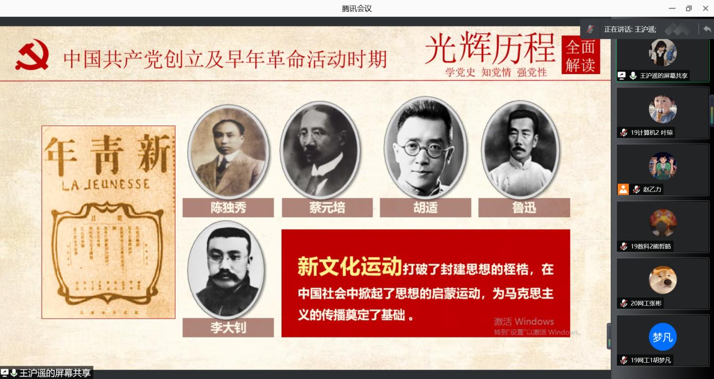 为学习贯彻习近平总书记在庆祝中国共产党成立100周年大会上的重要讲话精神,六合彩网站 本科生第二党支部于2021年7月31日下午1时30分在腾讯会议上召开了学习会。此次学习会由18计算机2班王沪遥同学主持,支部全体党员以及20名入党积极分子参加。