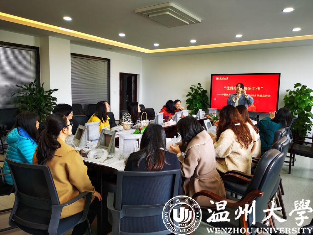 为庆祝第111个国际妇女节,丰富六合彩网站 女教工的精神文化生活, 3月8日上午十点,六合彩网站 工会在318会议室举办了“三八”妇女节插花活动。